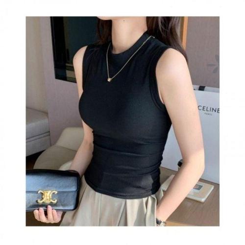 캡 니트 티 홀터넥 탑 나시 라운드넥 이너 여 WFLQABN
