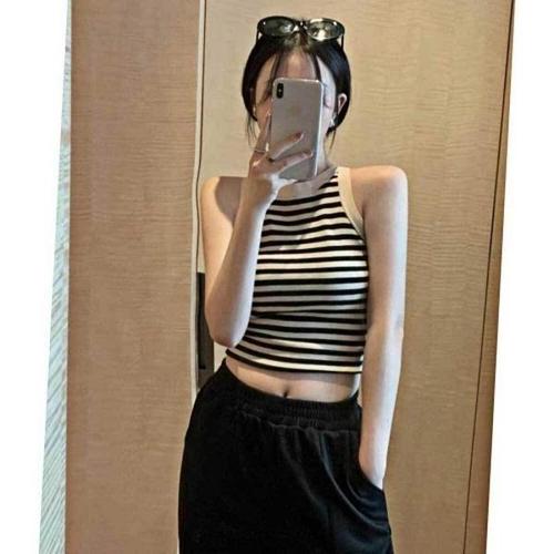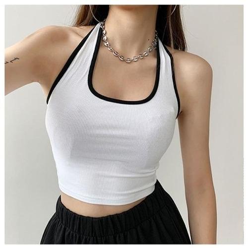 [엄지척]나시 홀터넥 민소매 티 여자 끈 크롭 캡내장 브라탑_19630090_667501