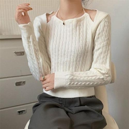 [미라클세븐]여성용 봄가을 레이어드 홀터넥 니트 세트