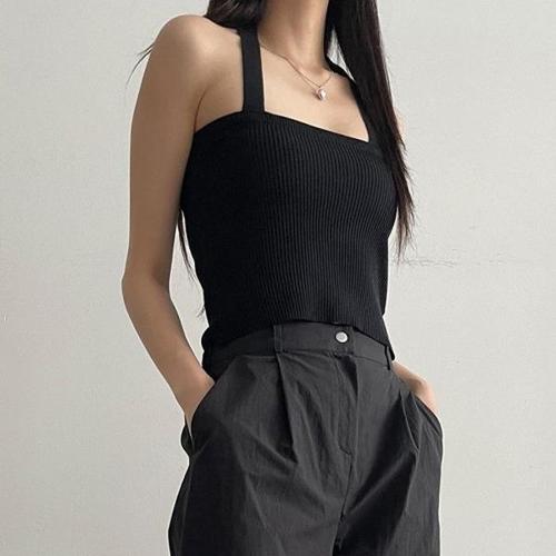 크롭탑 니트 백리스 여자 끈나시 민소매 홀터넥 V넥 WFLQ883