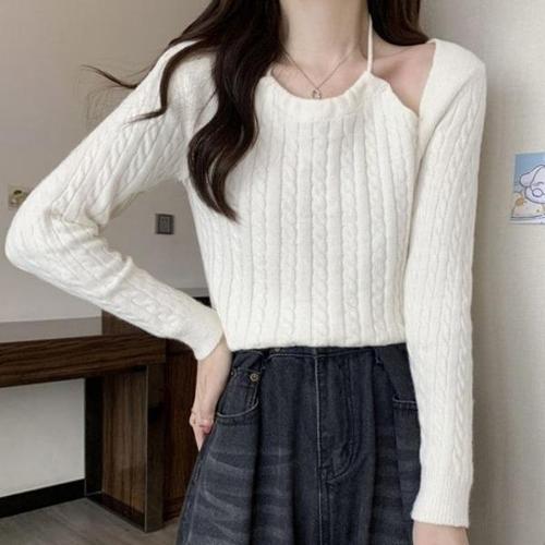 [엄지척]홀터넥 볼레로 꽈배기 긴팔 니트 캐주얼 여자 티셔츠_19626690_667501