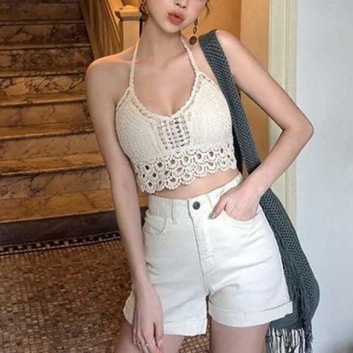 [엄지척]여자 니트 나시 끈나시 홀터넥 크롭티 백리스 휴양지_19677883_667501