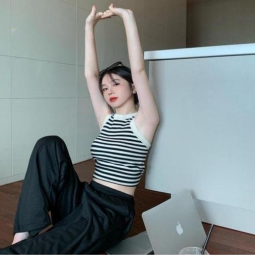 [엄지척]여자 스트라이프 스타일 크롭 홀터넥 나시 고품질 민_19646166_667501
