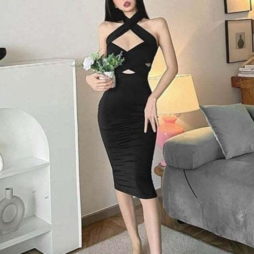 [셀럽하우스]여성의류 GBKM5526 홀터 블랙 롱원피스 모임룩 크로스 여성원피