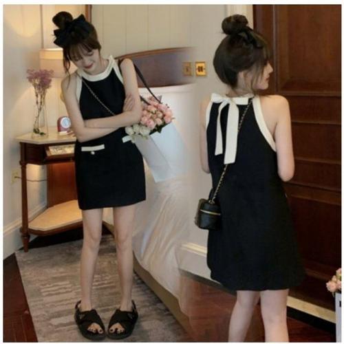 [셀럽하우스]블랙 FVXF1430 미니 드레스 슬림 스판 홀터넥 나시 끈원피 GWM