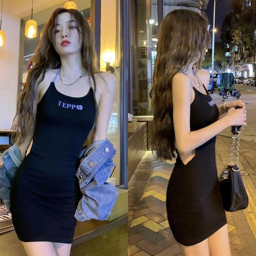 여자니트스커트 가을에는 중요한 자리에 참석하는 럭셔리 부잣집 천금 블랙 홀터넥 니트 원피스 힛템