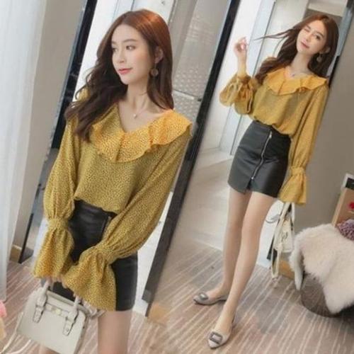 [엄지척]F11782 봄신상 프릴 도트 무늬 공주풍 V넥 블라우스_19643168_667501