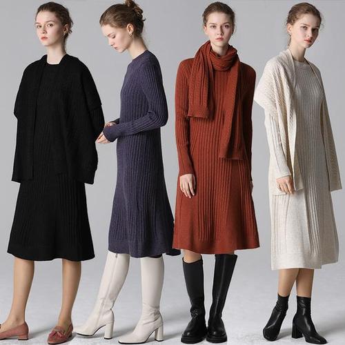 TEMU 플러스 사이즈 - 새로운 가을/겨울 단색 라운드넥 긴팔 드레스, 옆트임, 다재다능하고 젊음 넘치는 한국 스타일 미디 길이 디자인|민소매원피스|가을원피스|드레스