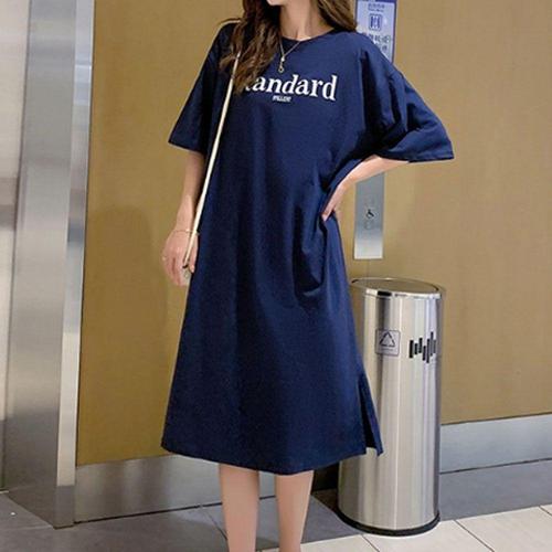 [셀럽하우스]레터링 UNNM2667 홈웨어 간편한 롱원피스 원피스 반팔원피스 트