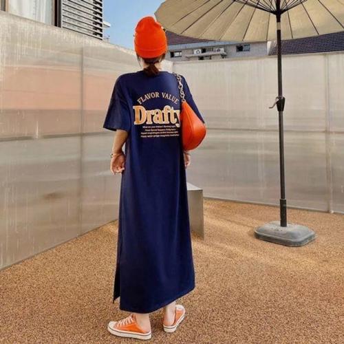 [셀럽하우스]롱원피스 MGXN5899 인기 트임있는 홈웨어 레터링 감성 간편한
