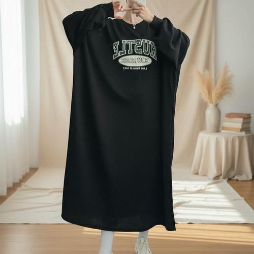 스타일아유 여성 빅사이즈(66~99) 오버핏 홈웨어 긴팔 레터링 롱원피스 롱티 OP1555