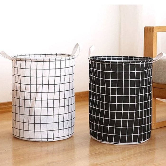 [셀러허브_여성트랜드패션]수납 바구니 세타 정리 흰색격자무늬 빨래 바스켓 장난감
