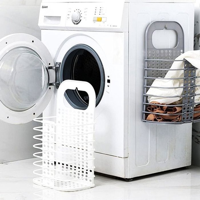 엄지척 빨래바구니 프라스틱 접이식 폴딩 세탁바구니 화이트