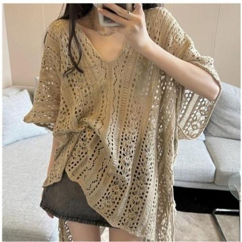 [엄지척]진베이지 니트탑 그물니트 화이트 그물 브이넥 브이넥_19677708_667501