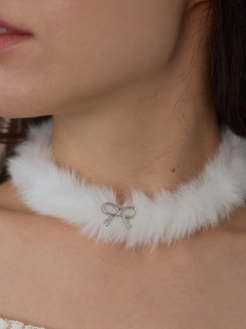 [핑크파인애플] WINTER PUFFY RIBBON CHOKER_WHITE
