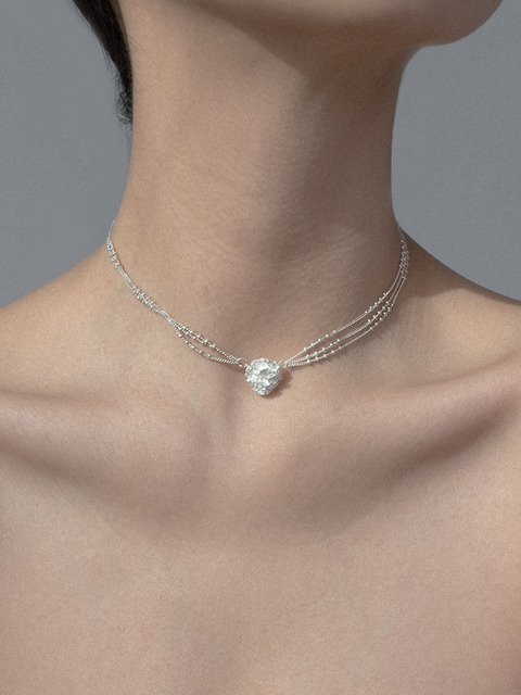 이아이 화이트 투명 크리스탈 비즈 초커 목걸이