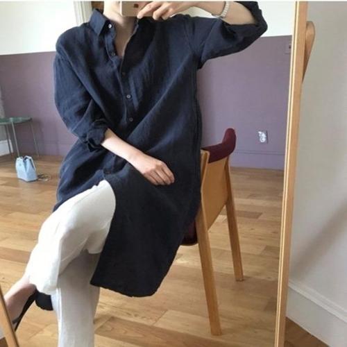 흰색원피스 린넨 반팔 롱셔츠 휴양지원피스