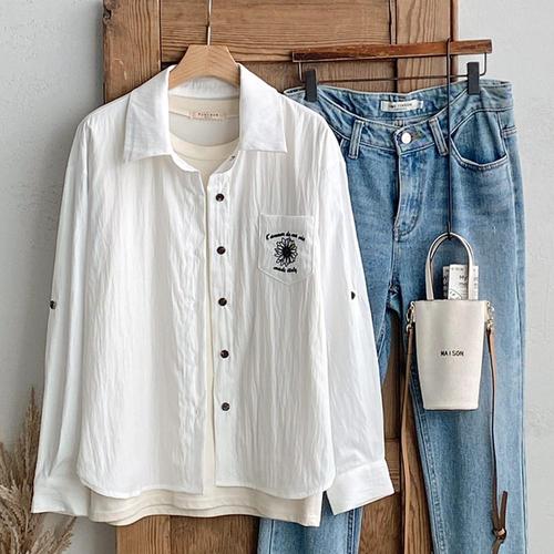 [샵앤]여성 카라넥 롤업 꽃자수 간절기 블라우스 DGB-WBL-4741-화이트