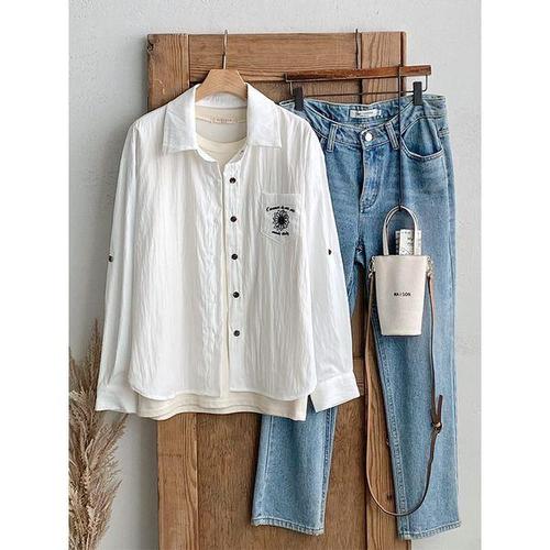 여성 카라넥 롤업 꽃자수 간절기 셔츠 블라우스 DGB-WBL-4741-화이트