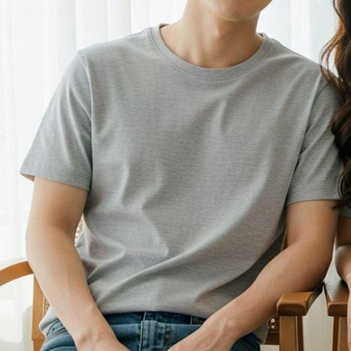 남자 솔리드 7부 라운드 반팔 티셔츠 5C-TSA-Q072-진회색