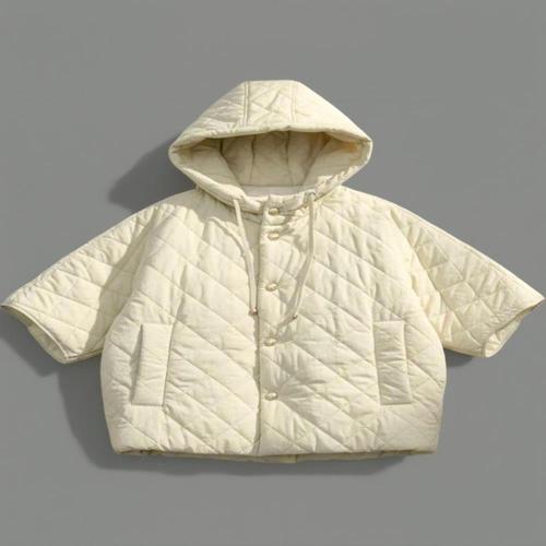 [옷자락] 여성 단색 누빔 포근 후드 끈 반팔 패딩 재킷