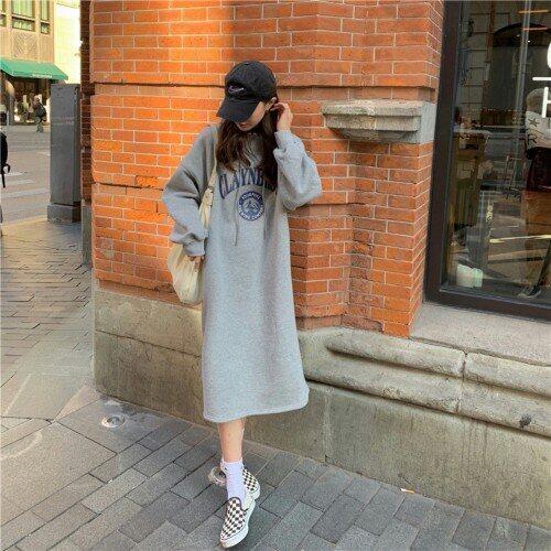 [HYIJVKGW_4B]후드원피스 루즈핏 후드 기모 원피스