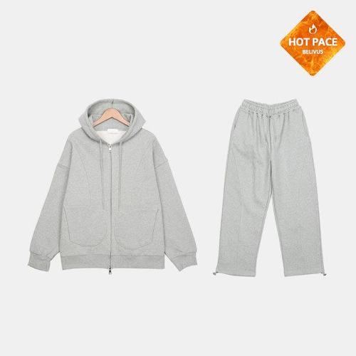 [빌리버스]빌리버스 남성 겨울 데일리 셋업 코튼 기모 커브 절개 후드집업세트 BROV008