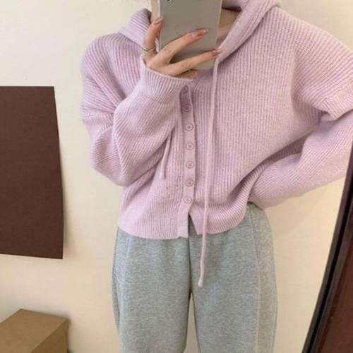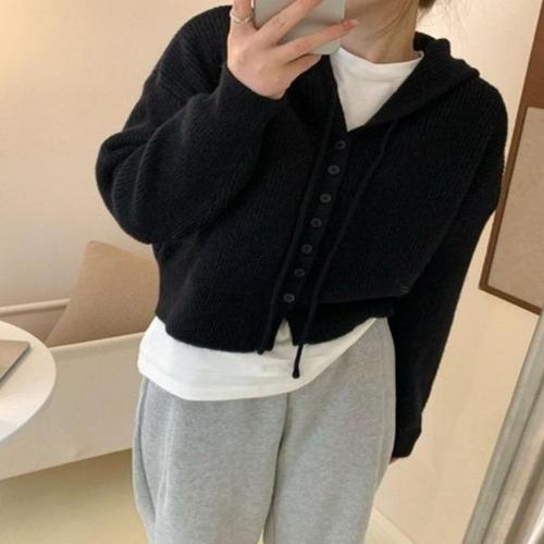 [신상오픈런]여자 여유핏 펀칭 스트링 후드 숏 니트 가디건