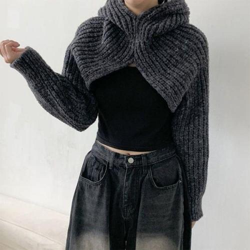 [옷자락] 여자 여유핏 펀칭 스트링 후드 숏 니트 가디건