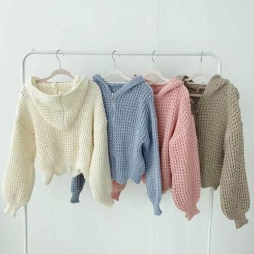 [엄지척]기장 집업 숏 크롭 여성 니트 와플 가디건 후드_19873914_667501