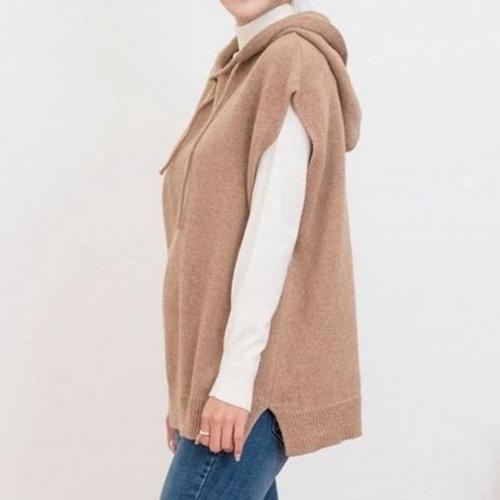 [옷자락] 여성 캐주얼 꽈배기 후드 니트 베스트 스트링 단추 포함