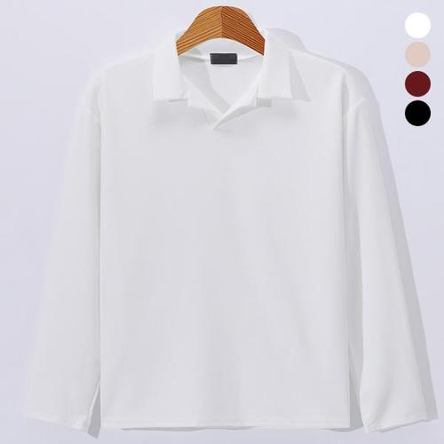 [후앙스]베이직 미니멀 오픈 카라 긴팔 티셔츠 RCCT7470