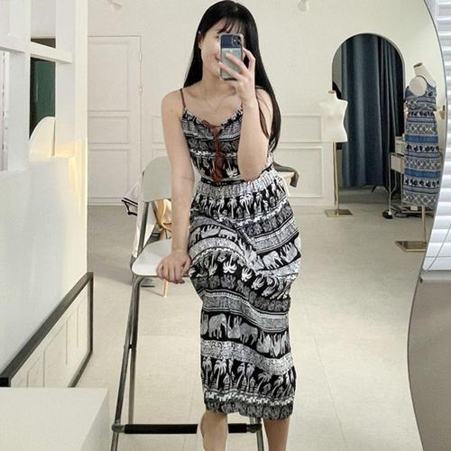 [셀럽하우스]여자 DAEV1086 휴양지 여름 트렌드 끈나시 롱원피스 데일리 휴