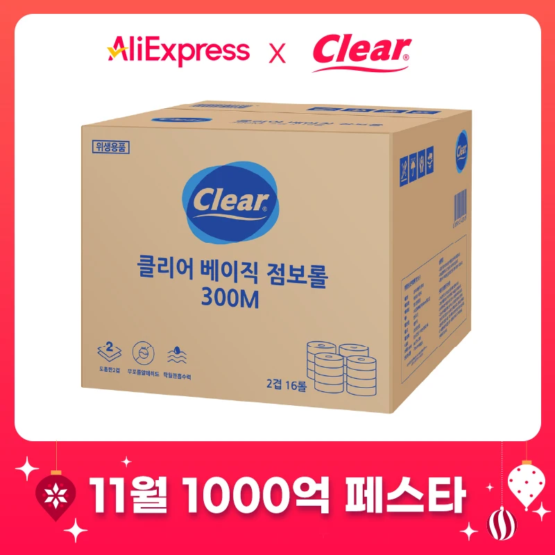 클리어 베이직 점보롤 2겹 300m 16롤 대용량 공공장소 휴게소 업소용 빌딩관리 화장지 휴지 두루마리