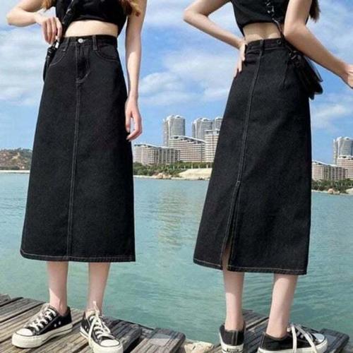 가비진 여성용 스판 워싱 데님 H라인 뒤트임 청치마 데님 스커트 롱스커트 치마