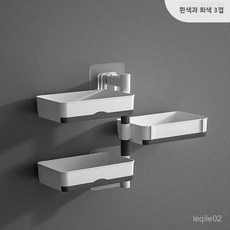 hihia-619 욕실 흡착식 벽걸이 비누통 이중 회전 선반 물빠짐 구조 공간 절약, 3겹의 흰색