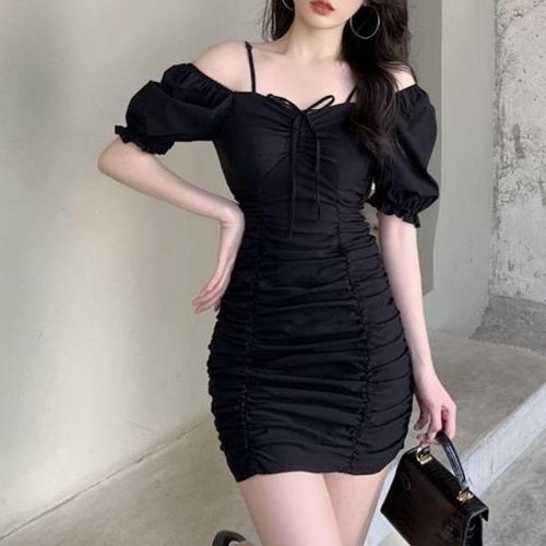 [오노마] ONM 주름 오프숄더 퍼프 드레스 슬림 스퀘어넥원피스 흰색