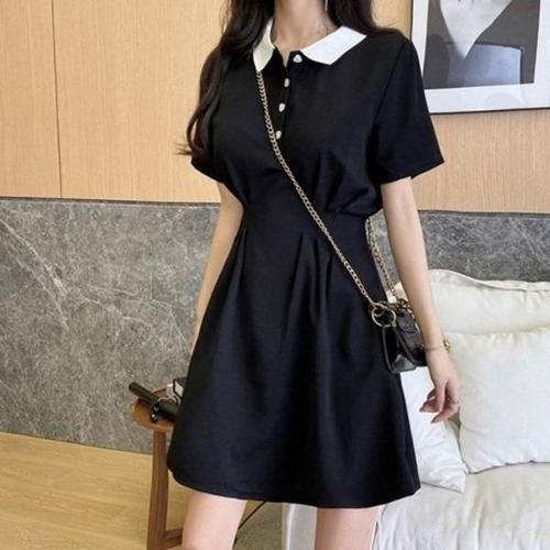 [엄지척]여름 시원한 예쁜 화이트 배색 카라 블랙 치마 원피스_19872919_667501