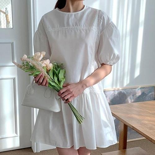 [엄지척]라운드넥 여성 하얀색 반팔 원피스 캐주얼 여름 코디_19913589_667501