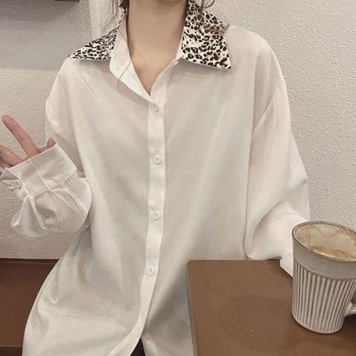 [엄지척]호피패턴 카라 블라우스 여유핏 베이직 흰셔츠_19649569_667501