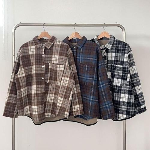 [다잇템][다잇템] 여성 아방핏 언발란스 라이닝 격자 양털 힙커버 빅 셔츠_24047413_588872