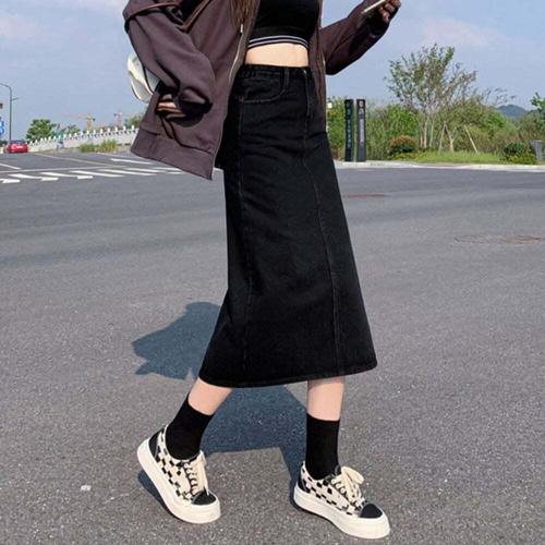 [셀럽하우스]여성 SRHJ0278 청치마 캐주얼 뒷트임 날씬핏 A라인 데님치마