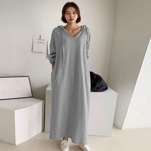 [셀럽하우스]여성 EOFJ0278 후드 V넥 편한 데일리 루즈핏 포켓 롱 원피스
