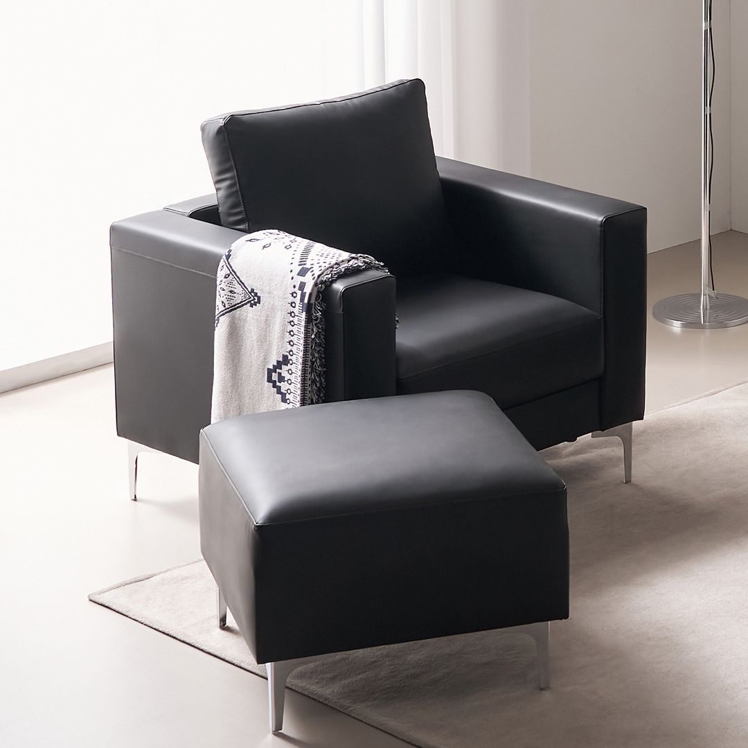 [쉐우드가구] 랄스101A 1인용 천연통가죽 소파 + 스툴