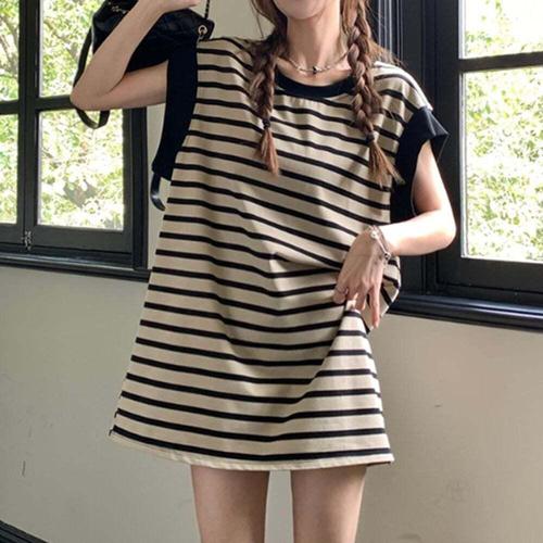 [엄지척]여성 여름 캡소매 단가라 미니 원피스 대학생 10대_19910878_667501