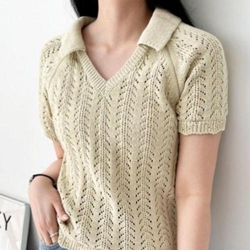 국산 여성 여름 카라넥 반팔 니트 티셔츠 WDM-WKN-2LCBB1031