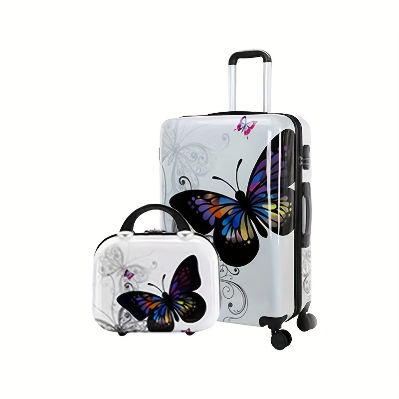 TEMU 항공사 승인된 20인치 하드사이드 기내 반입 수트케이스 2개 세트, PC+ABS 재질, 바퀴 및 콤비네이션 잠금장치 장착, 남녀 모두에게 적합한 경량 롤링 여행 가방, 나비 프린트 특징.