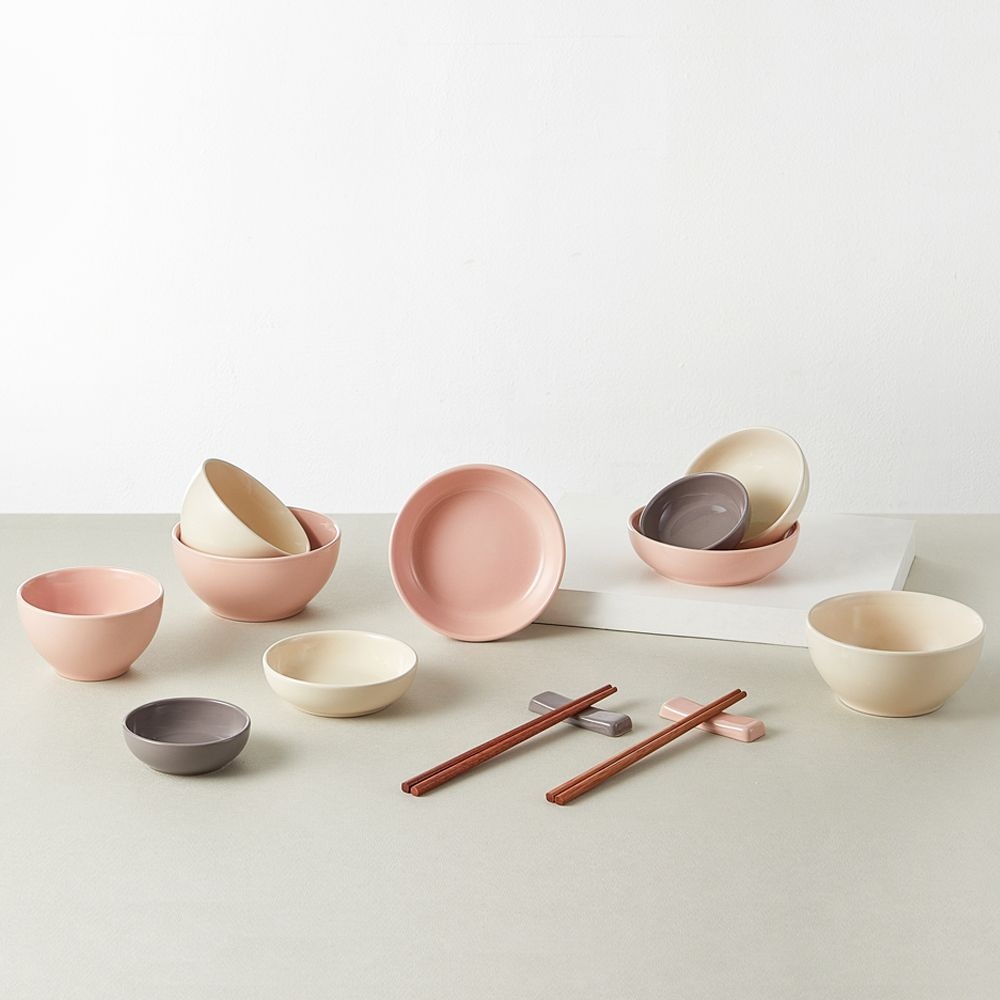 [7+7] 마이템 도노 도자기 식기세트 14P (2인용세트/소프트핑크)