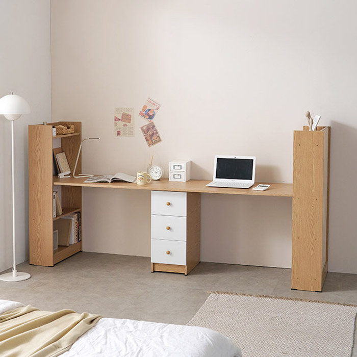 형제자매방 2인 3단서랍 4단책장 책상세트(2400 2색)