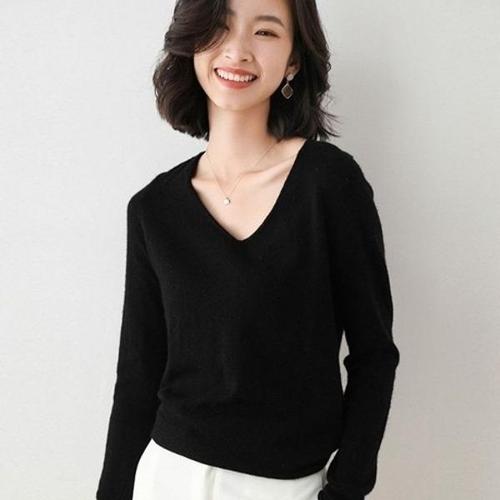 [엄지척]숏 브이넥 신축성 좋은 긴팔 골지 티셔츠_19629495_667501